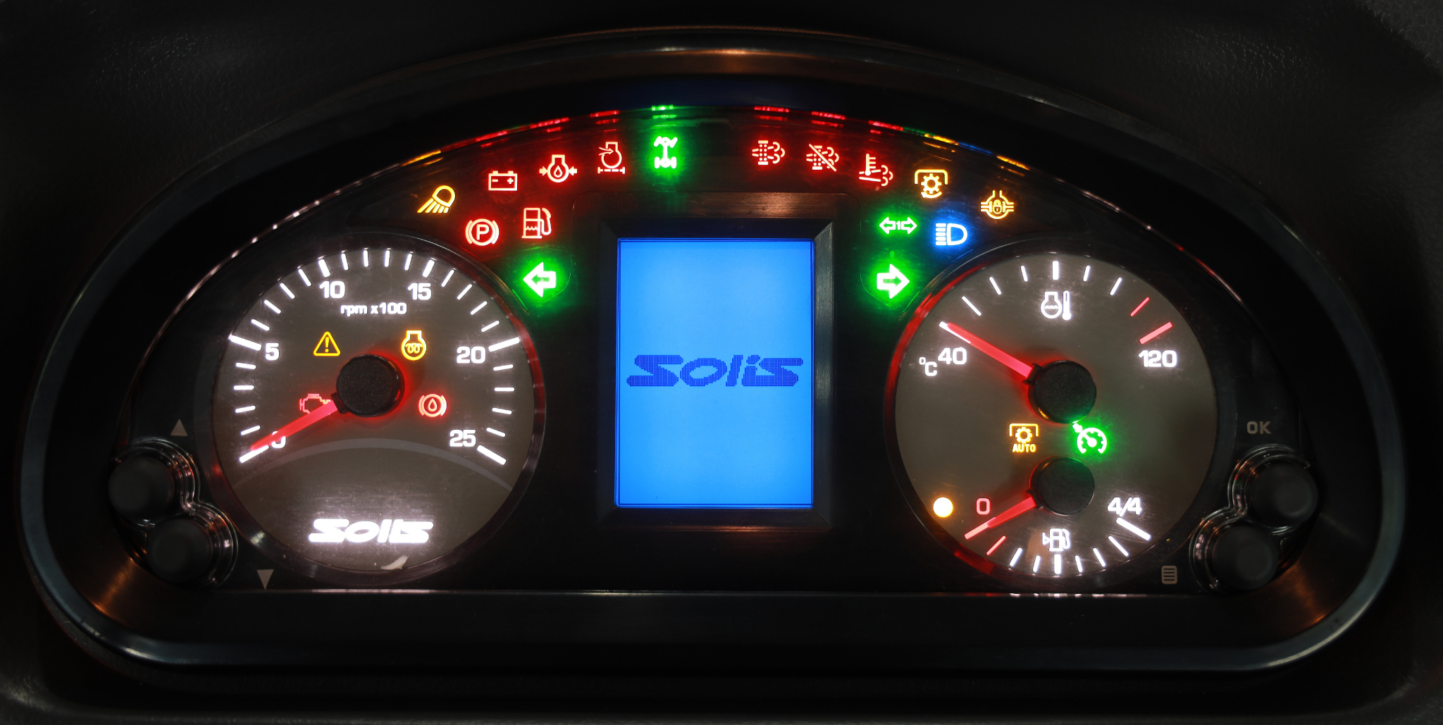 Deze 50 pk Stage V tractor van Solis is verkrijgbaar in 4 wd, als ROPS uitvoering en een 4wd cabine uitvoering. Er ligt een betrouwbareSonalika 3-Cilinder Diesel ITL, CRDi-Motor in die garant staat voor een zeer hoog koppel, een ideale tractor voor zware werkzaamheden. Deze tractor is zeer geschikt voor de kleine boer, paardenhouder, particuliere gebruiker of als bijtractor op het veeteelt- en akkerbouwbedrijf.